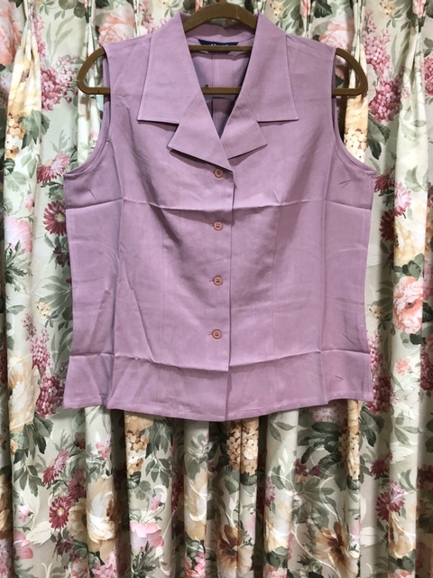 > 9783 15 F 超破格値! 特別限定!在庫処分大特売!富士絹100% シルク100% 開襟 袖無ブラウス ベスト 2way フリーサイズ