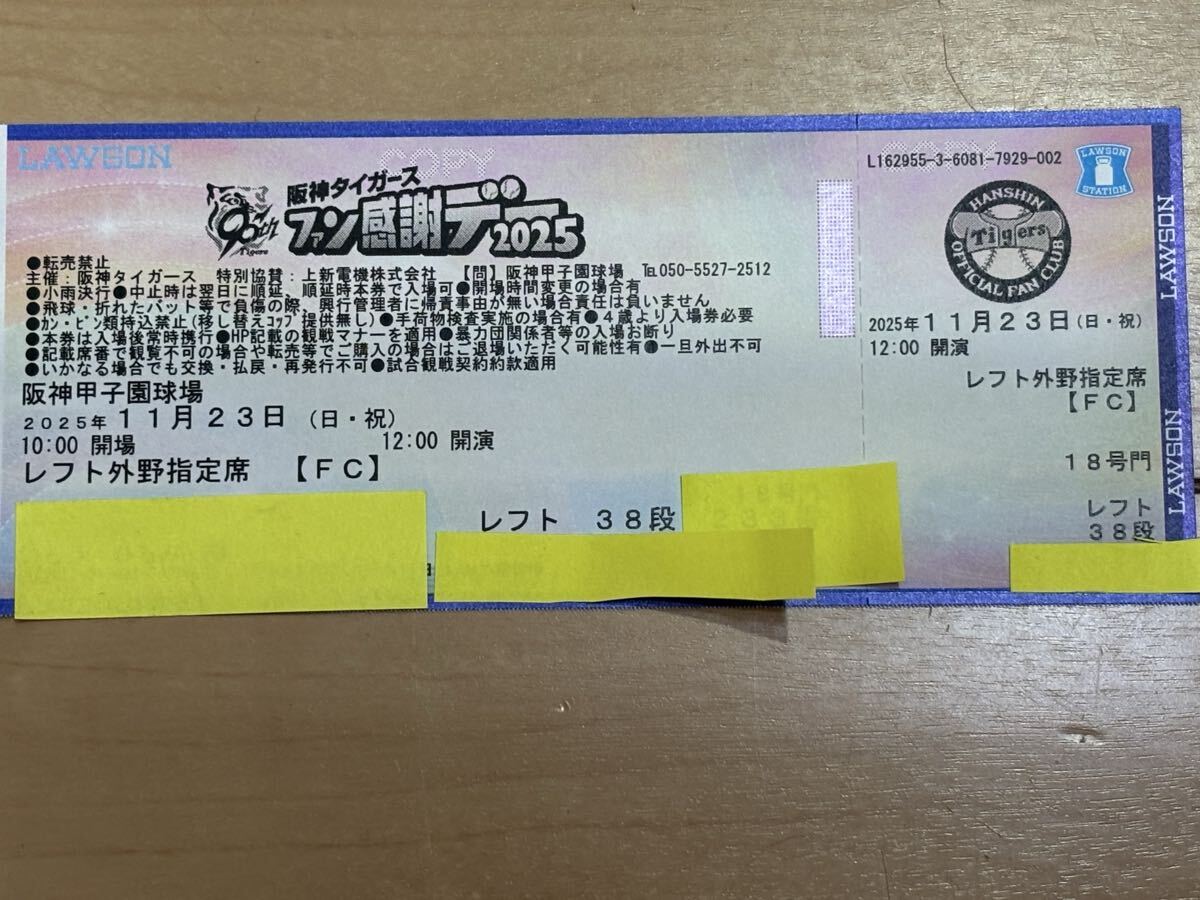 > 1円スタート!2025阪神タイガースファン感謝デー レフト外野指定席チケット