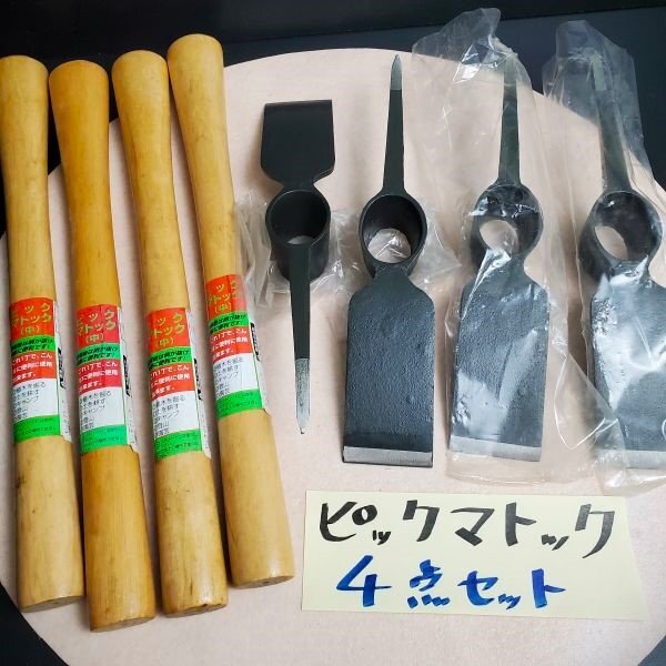 - 【アウトレット品】 ピックマトック 中 4点セット メーカー不明 園芸 農業 登山 キャンプ ガーデニング 造園 マトック つるはし sp-032-561