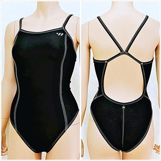 - BE5-E70☆//swave♪競泳水着*新品☆*ブラックベースに白のステッチがオシャレに目立つ☆背中開き※一番安価な送料はゆうパケットなら250円
