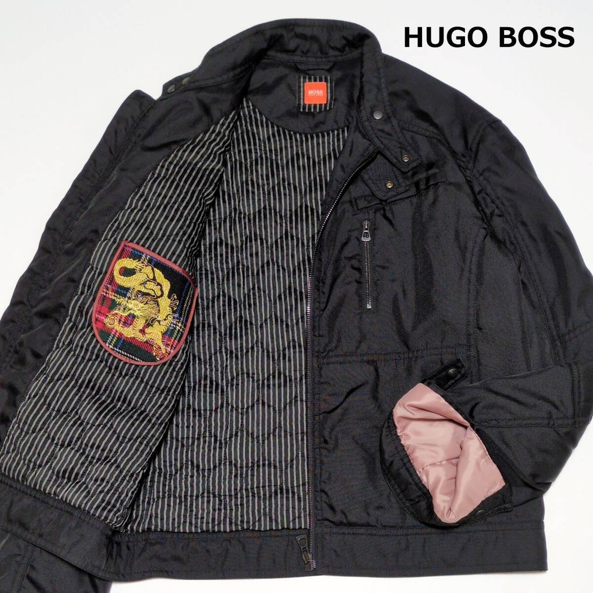 > 美品 希少XLHUGO BOSS ヒューゴボス 龍刺繍 ブルゾン ジップアップ 裏地キルティング ブッラク 黒 アウター メンズ ジャケット