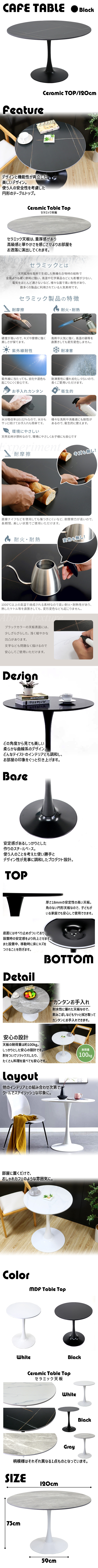 - 送料無料 カフェテーブル ダイニングテーブル 人工大理石天板 直径約120cm ブラック おしゃれ 円形テーブル 丸テーブル ラウンドテーブル