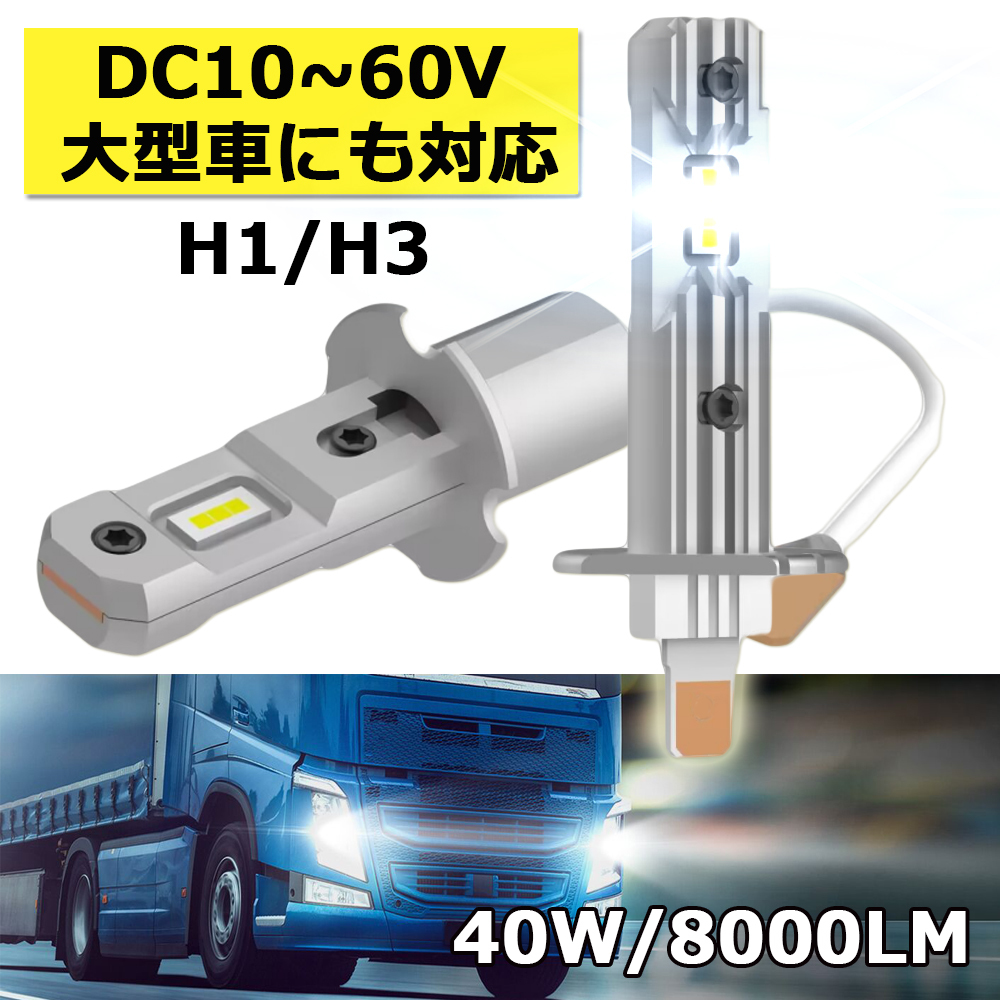 > LEDヘッドライト フォグランプ H1/H3 DC12/24V兼用 大型車対応 ポン付け コンパクト 10~60V 40W 8000ルーメン 6000K 2本セット