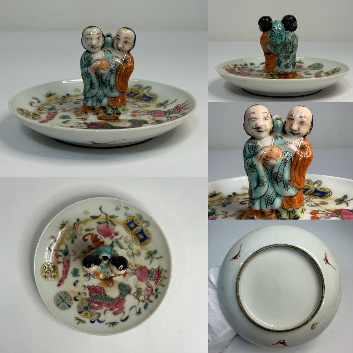 - X-中国古美術 時代物 色絵 粉彩 線香立 人物図 獅子図 香道具 唐物 陶磁器 中国古玩 骨董品