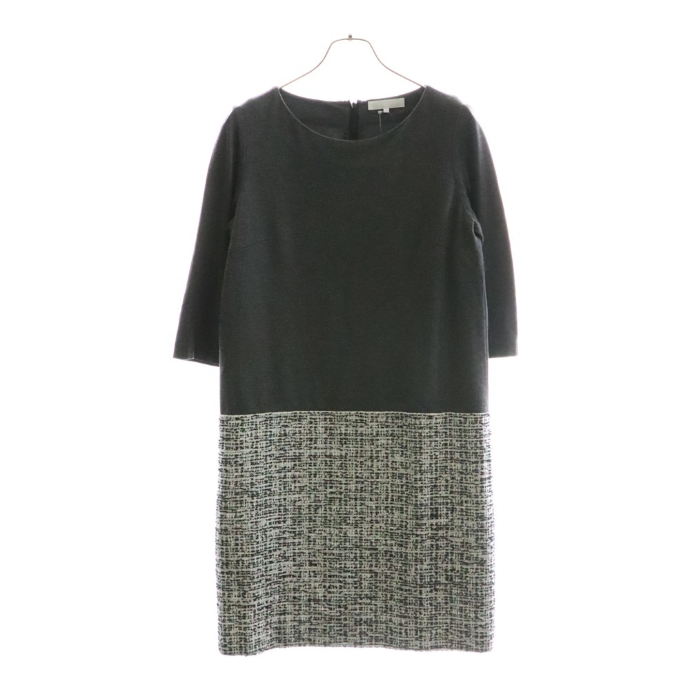 - 自由区 ジユウク バックジップ ツイード切り替えワンピース グレー×ホワイト