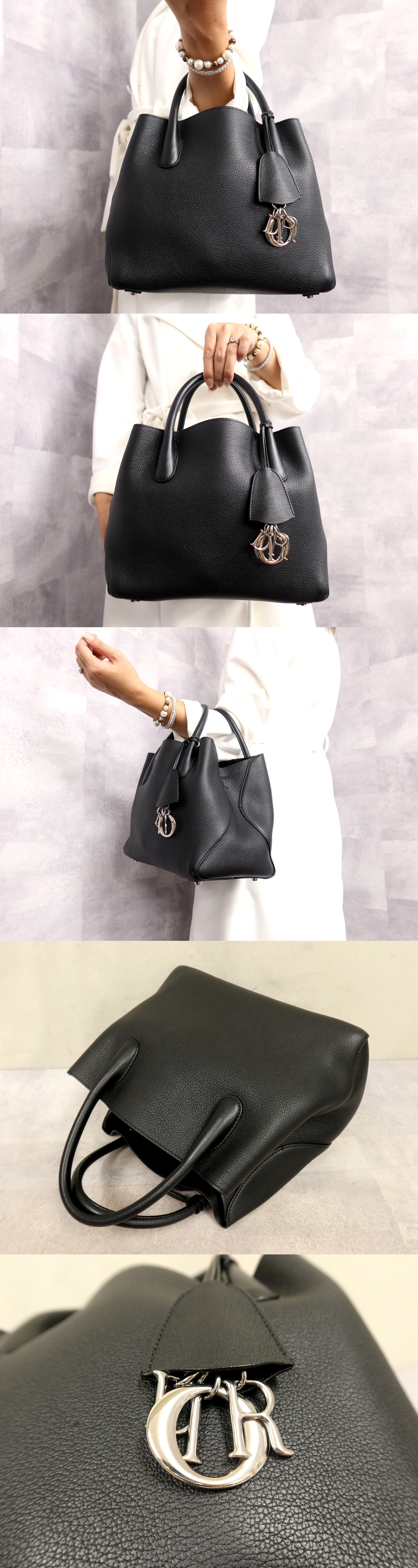- ●超美品●Christian Dior クリスチャン・ディオール●オープンバー●カーフ レザー 本革●ハンド バッグ●黒●SV金具●腕掛け●Js61825