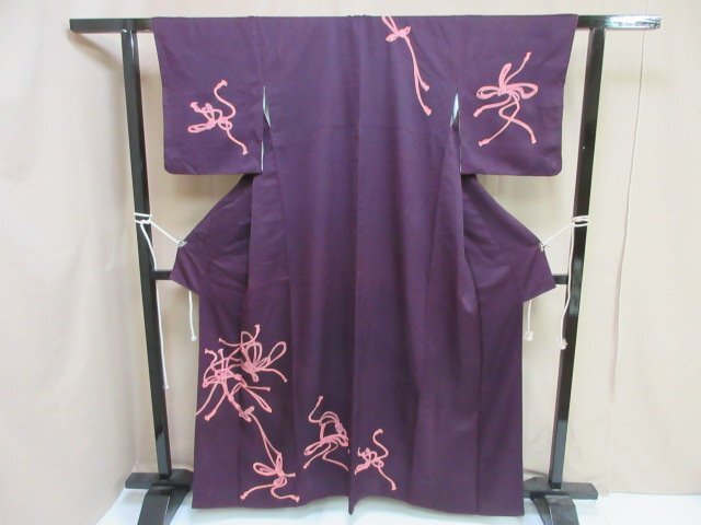 > 1円 良品 訪問着 正絹 着物 縮緬 式典 和装 和服 結び紐 高級 袷 身丈160cm 裄64cm【夢職】★