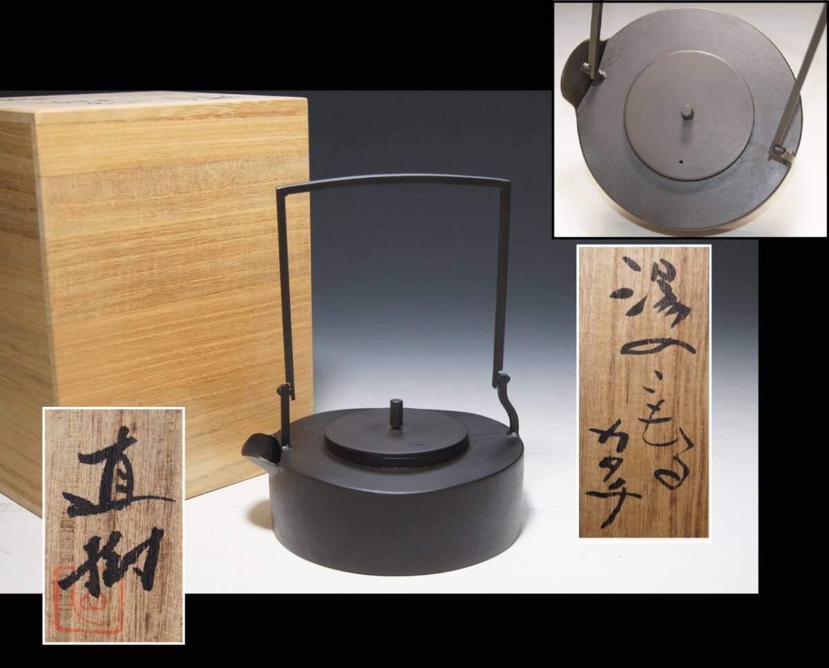 > 真贋保証 坂井直樹 作【湯のこもるカタチ】鉄瓶 未使用 共箱 湯沸 鉄器 鐡瓶 鍛金 群馬県生 東京芸大 金沢 モダン 茶道具 検:キャンプ