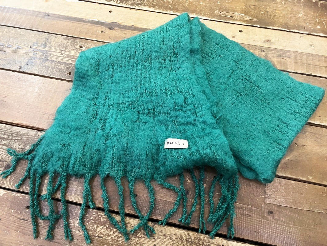 > R88★BALMUIR/バルミュール KID MOHAIR キッドモヘア混ストール マフラー フリンジマフラー グリーン レディース 170cm×27cm