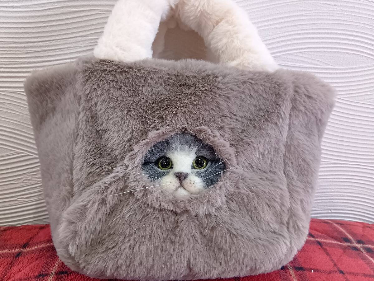 - 羊毛フェルト 猫 猫ちゃんエコファートートバッグ・バッグ・ハンドメイド