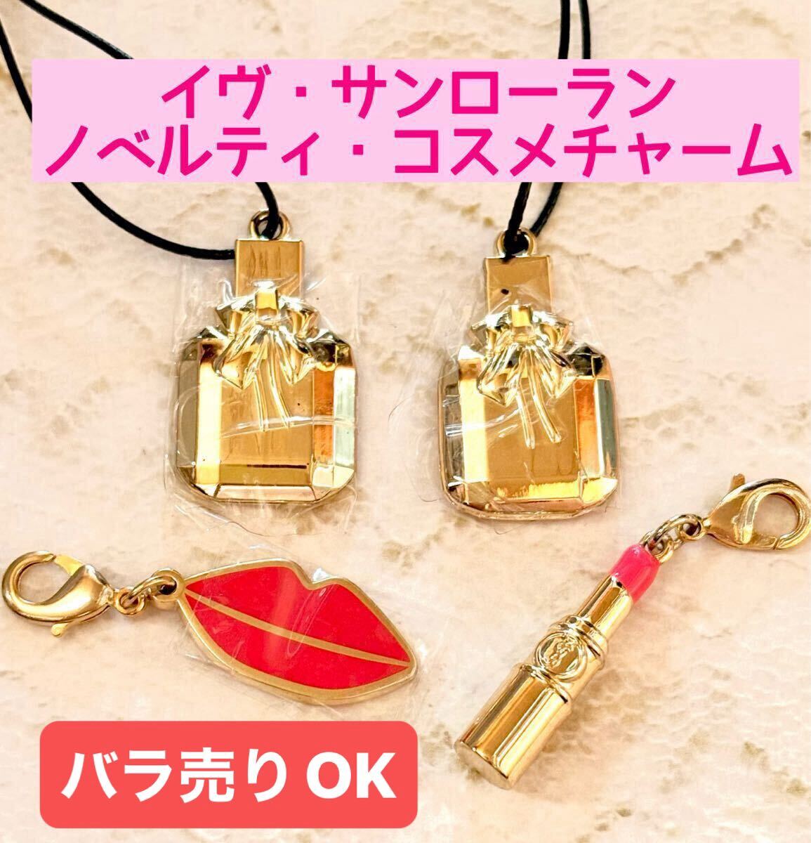 - YSL イヴサンローラン ノベルティ チャーム ルージュヴォリュプテシャイン モンパリ 香水 リップ型 4個セット ゴールド 口紅 バラ売可