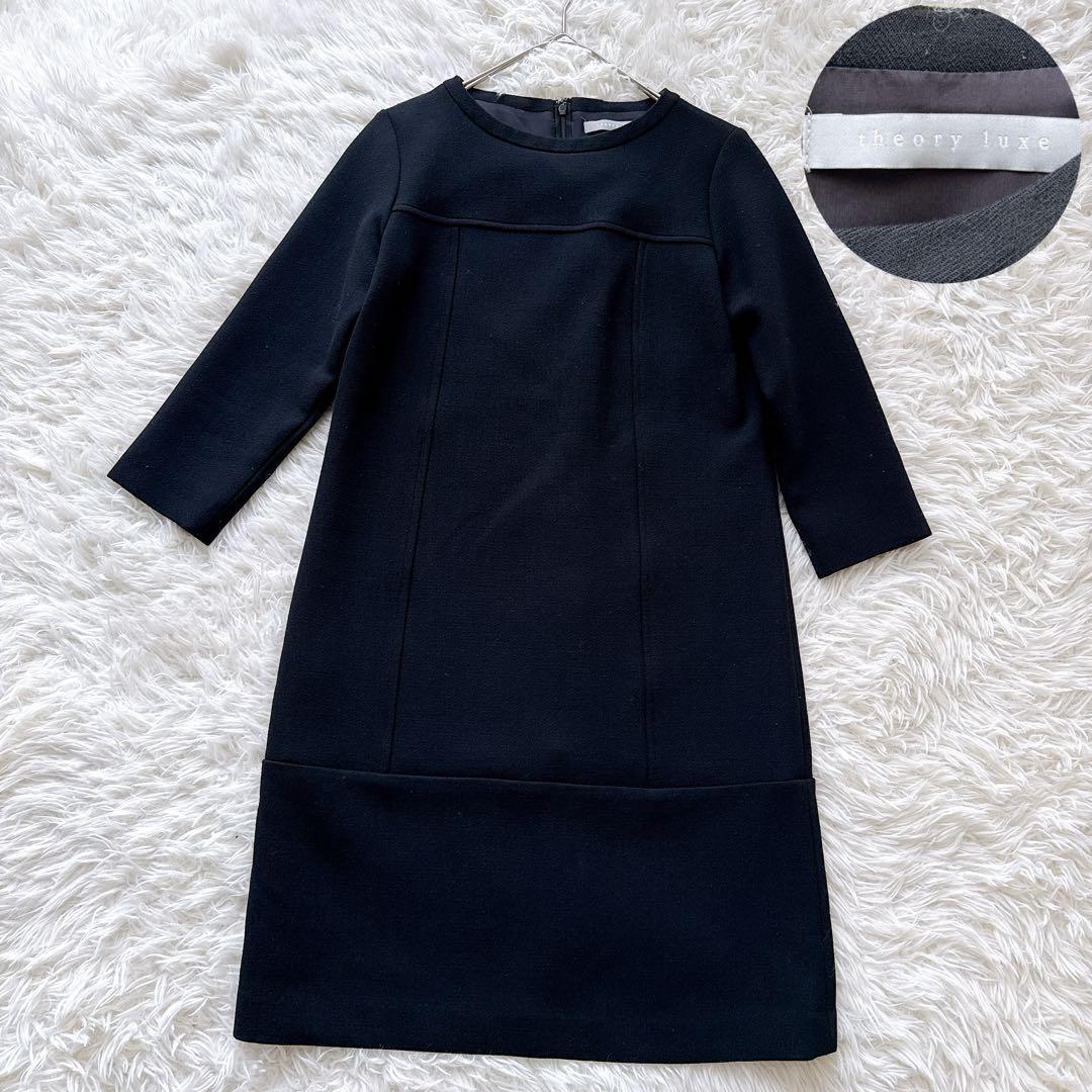 - theory luxe セオリーリュクス ウール混 ワンピース 七分袖 ミニマルデザイン 40サイズ 黒 バックファスナー フォーマル 通勤 セレモニー