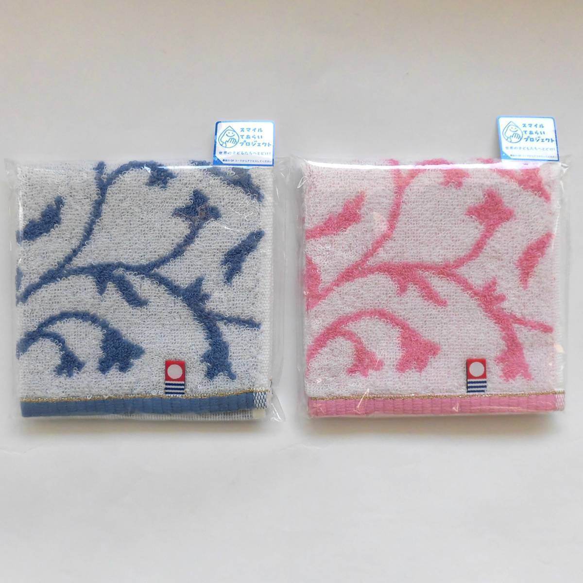 > 【即決 匿名配送 送料無料】2枚セット 今治 レガートリーフ タオルハンカチ ブルー&ピンク 約25×25 cm 綿100% ヘム部分に金糸を使用