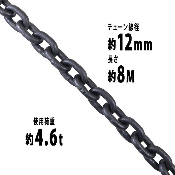 > 送料無料 チェーン 線径約12mm 使用荷重約4.6t 約4600kg 約8m G80 エコノミーモデル 鎖 くさり 吊り具 チェーンスリング スリングチェーン