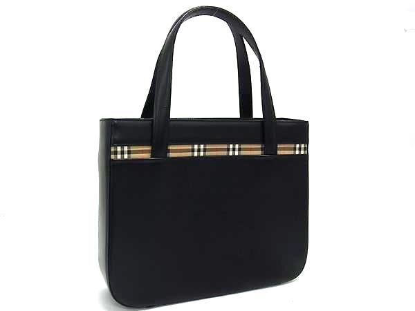 - 1円 ■美品■ BURBERRY バーバリー ノバチェック レザー ハンドバッグ トートバッグ レディース ブラック系 FU4983