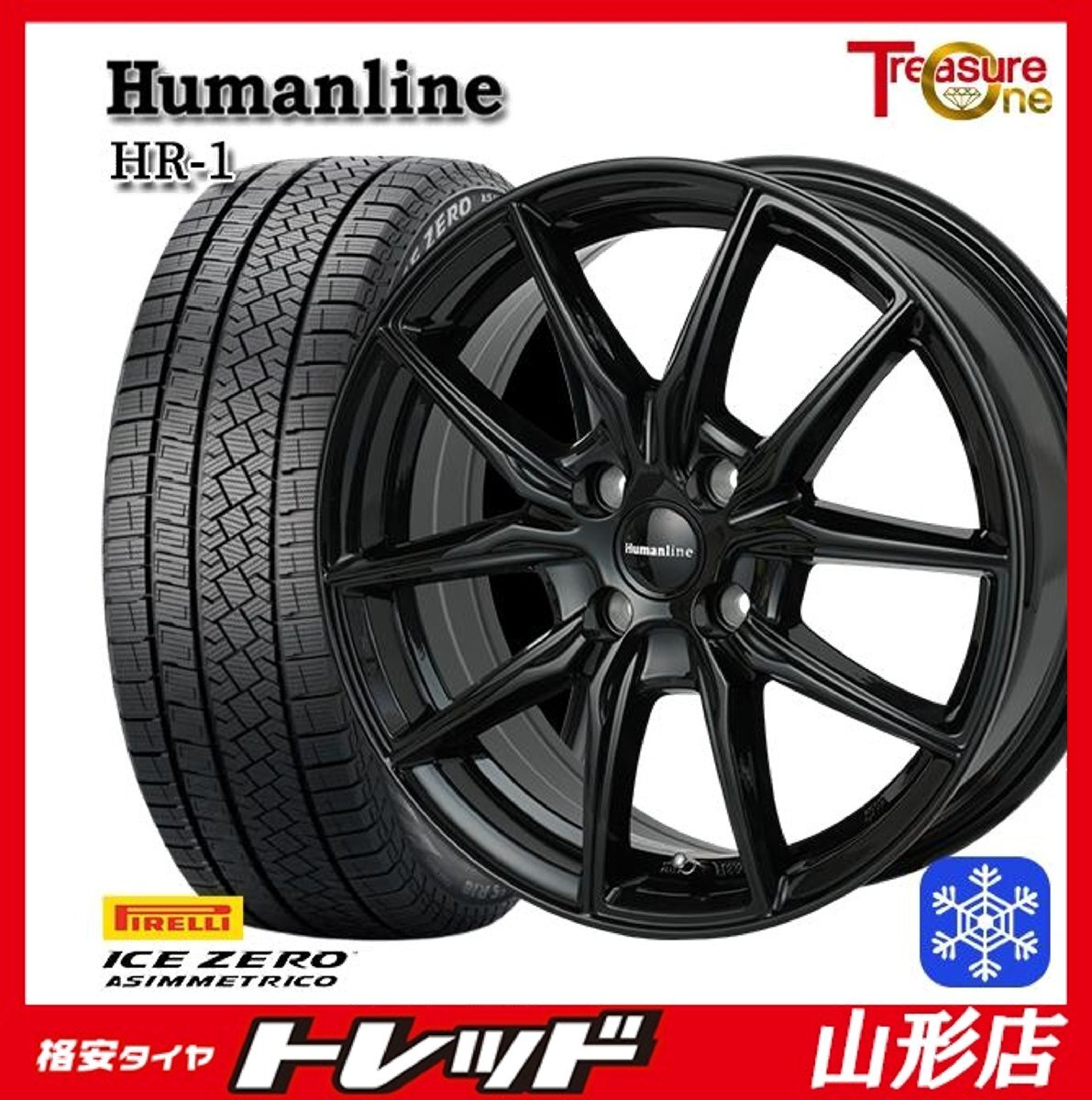 > 山形店 冬タイヤホイール4本セット Humanline HR-1 16インチ 6.0j 4H100 +42 BK ピレリ アイスゼロ アシンメトリコ 195/65R16 2022年製