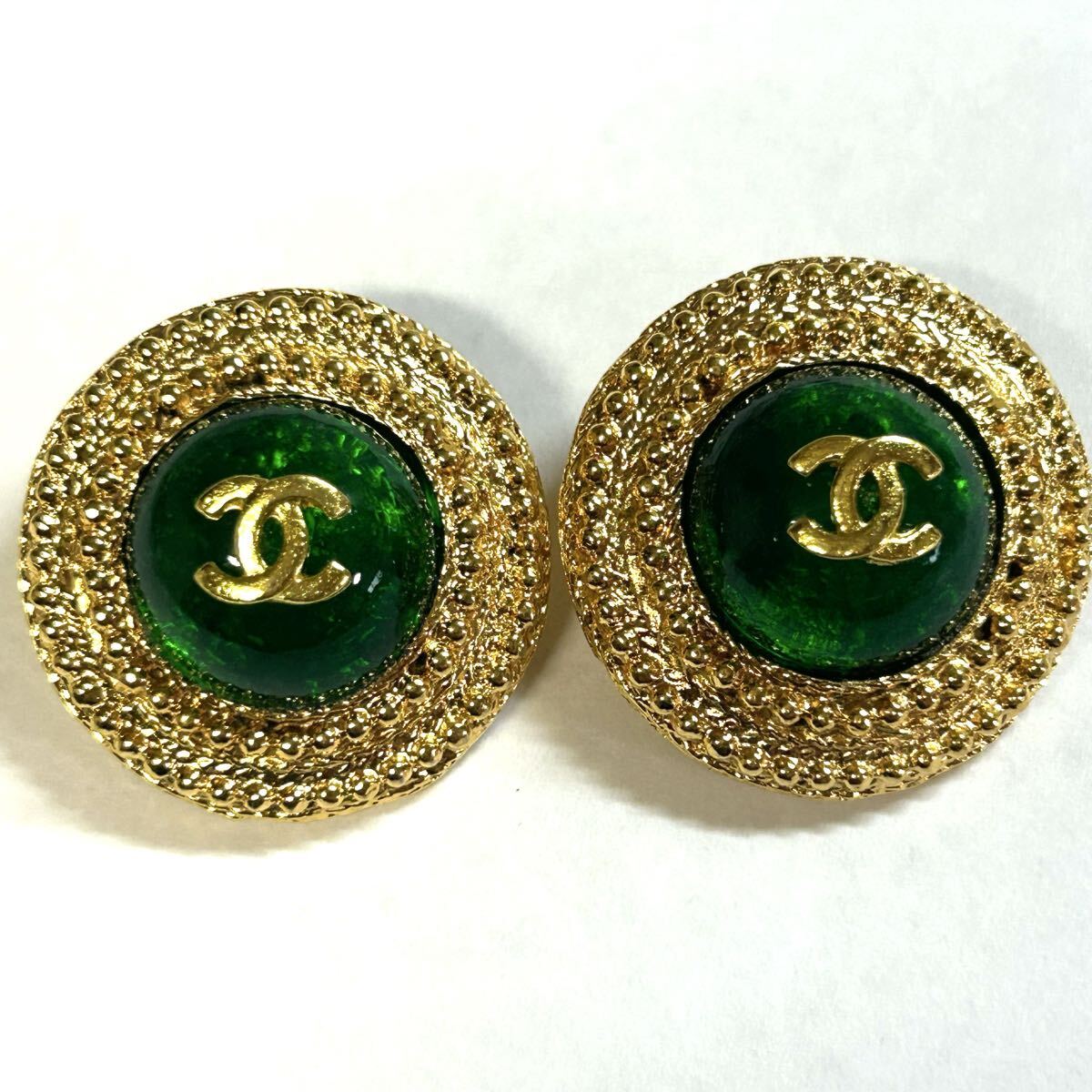 > シャネル CHANEL ココマーク イヤリング カラーストーン ヴィンテージ コメ有り グリーン ゴールドカラー