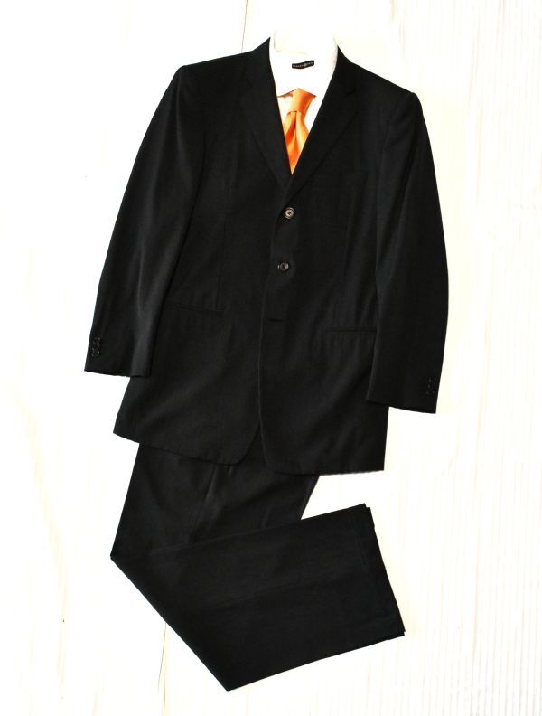 > 127★ジョルジオアルマーニ★GIORGIO ARMANI★黒ブラックグレー品格あるチェック小柄#羽織るだけで魅力をアピールできるシングルスーツ48ML
