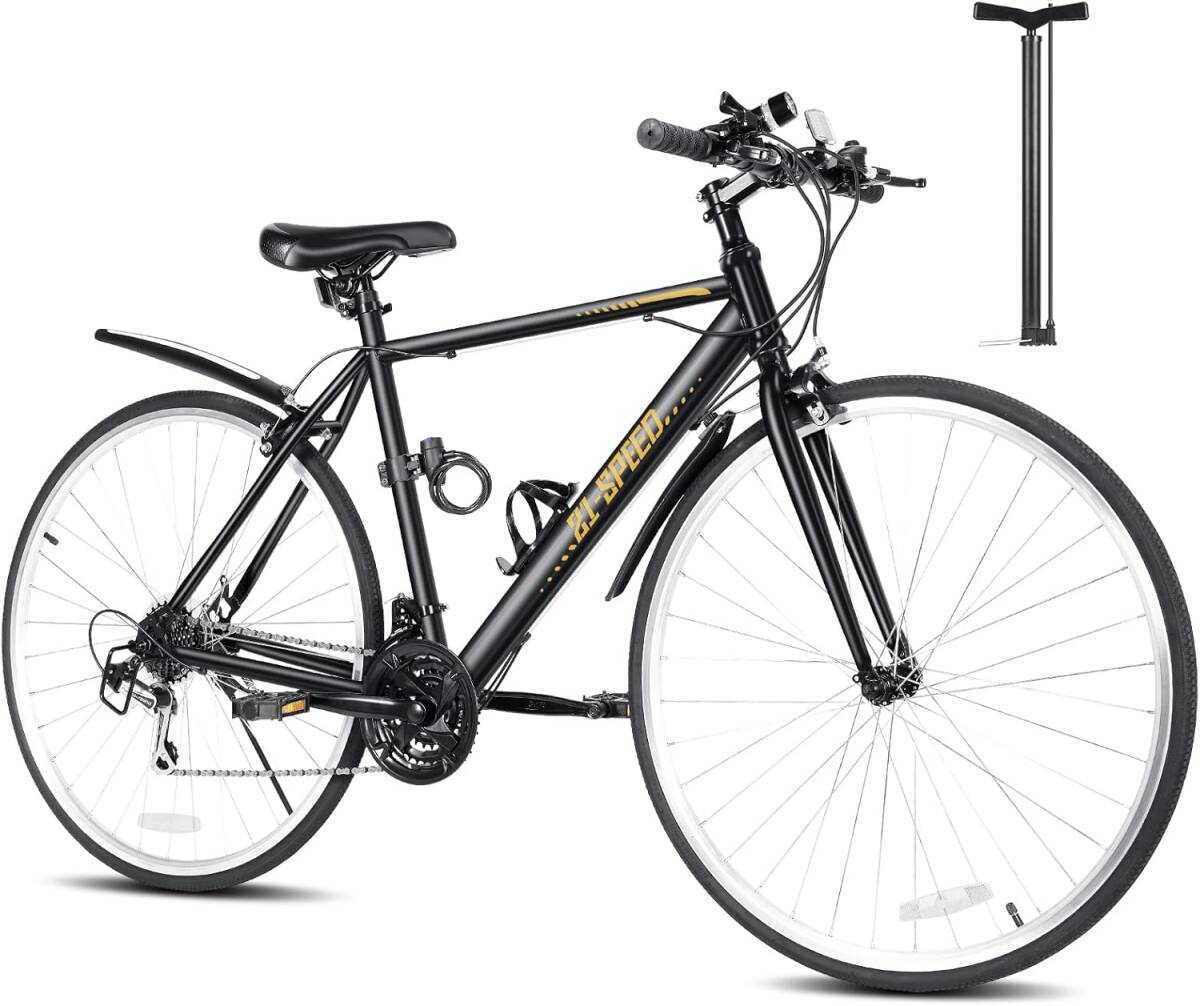 > ブラック色 クリスマスプレゼント 贈り物 Mixiu クロスバイク シマノ製21段変速 自転車 700C 27インチ相当 高炭素鋼フレーム