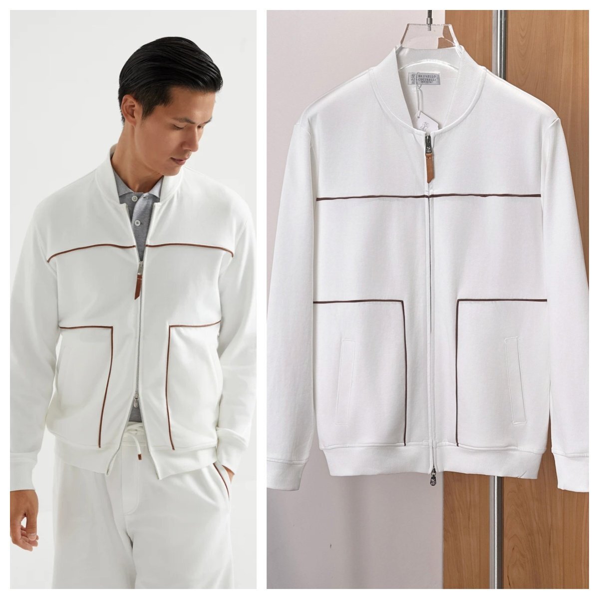 > ホワイトM★数量限定★在庫限り【送料無料】★ブルネロクチネリ ★スポーツウェア 上下セット, ジップアップパーカー スウェットパンツ