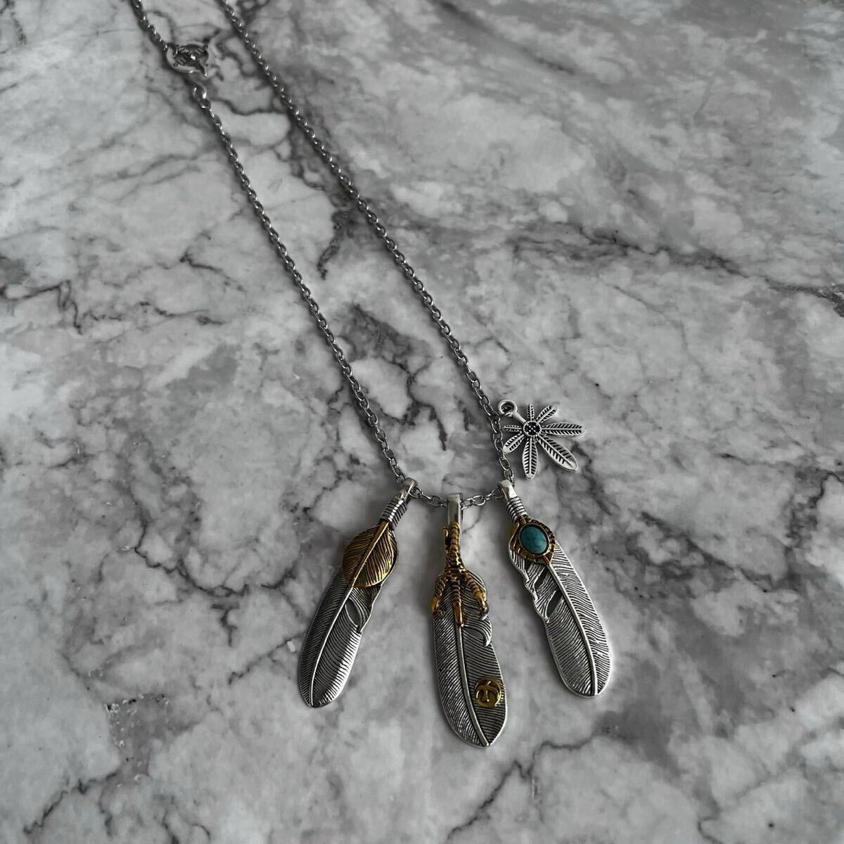 - フェザーネックレス 3連 アメカジ シルバー ターコイズ アメリカン インディアン