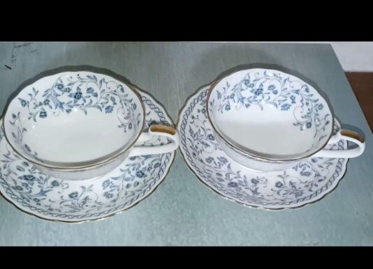 - NARUMI ティーカップ&ソーサー 2客セット 花柄 ブルー系 金縁
