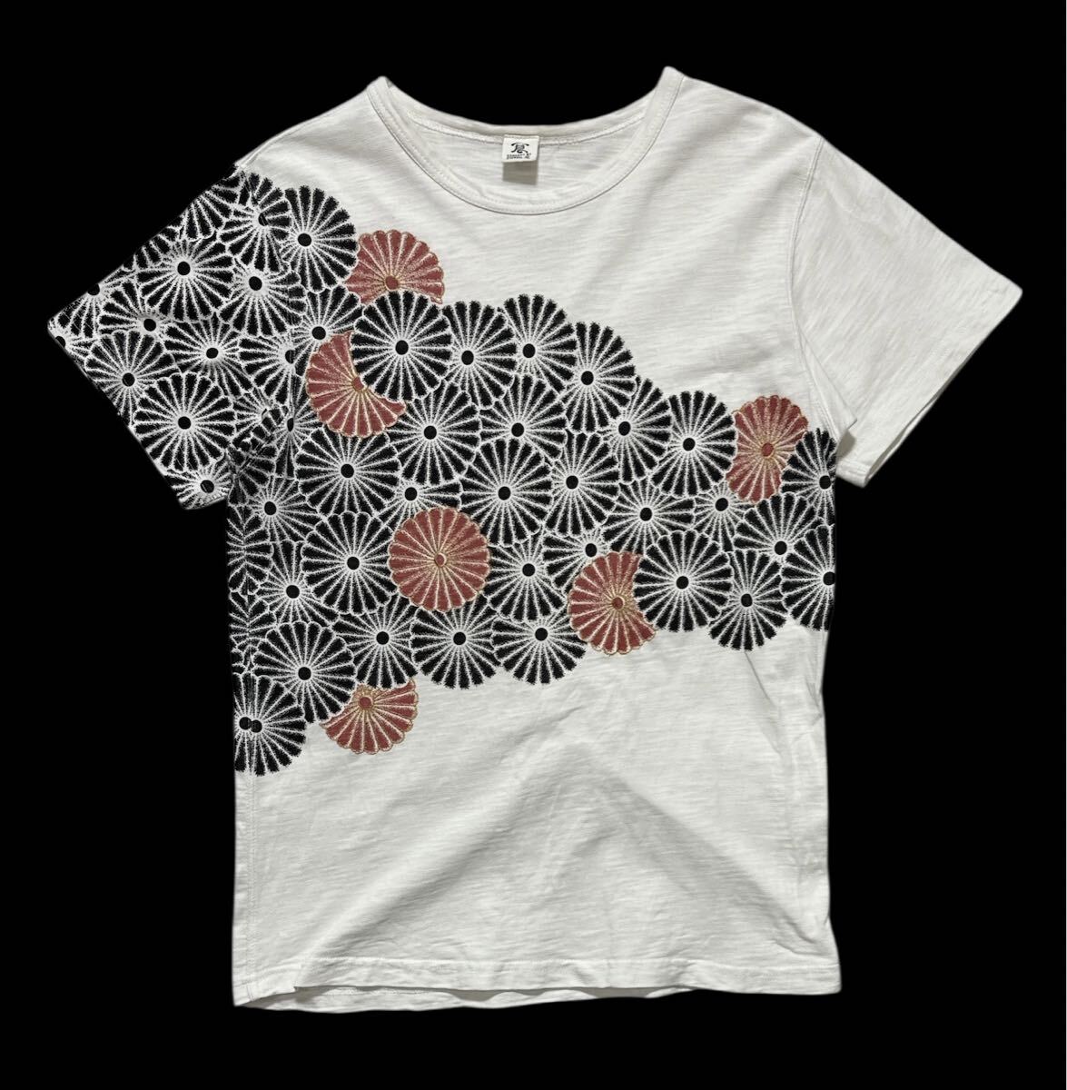 - 送料無料 ○ 備中倉敷工房 ETERNAL 倉 ビチュウクラシキコウボウ エターナル クラ ○ 和柄 菊 刺繍 プリント 半袖 Tシャツ ホワイト