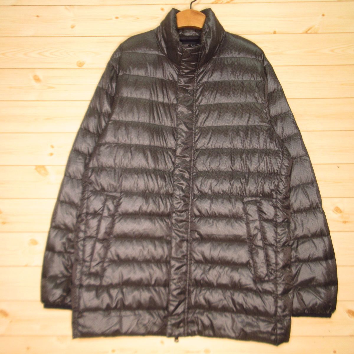 - ◎極美品!UNIQLO ユニクロ ハイネック ウルトラライトダウンコート 総柄 防寒 軽くてあたたかい! メンズ 黒 Lサイズ◆WA0268