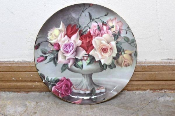 - ☆STECHCOL/ステッチコール AYNSLEY/エインズレイ ローズ絵皿 レッド系 antique アンティーク ヨーロッパ雑貨 vintage ヴィンテージ used☆