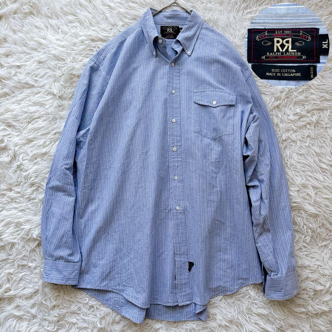 > 希少XLサイズ 三ツ星タグ RRL ダブルアールエル ラルフローレン ボタンダウンシャツ ストライプ アーカイブ メンズ アメカジ ヴィンテージ
