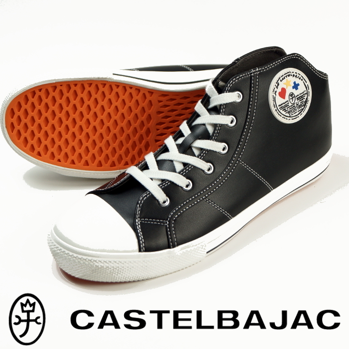 > 【新品】カステルバジャック CASTELBAJAC《ワッペン 家紋&ロゴ》コートタイプ メンズ ハイカット スニーカー 26.5cm 黒ブラック