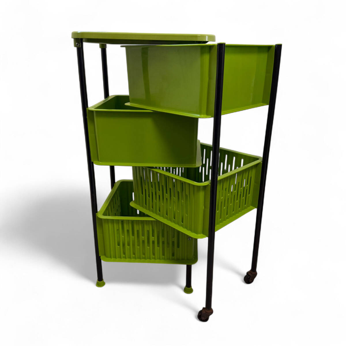 - M7-1529 プラスチック 4段 収納 棚 段違い グリーン 昭和レトロ