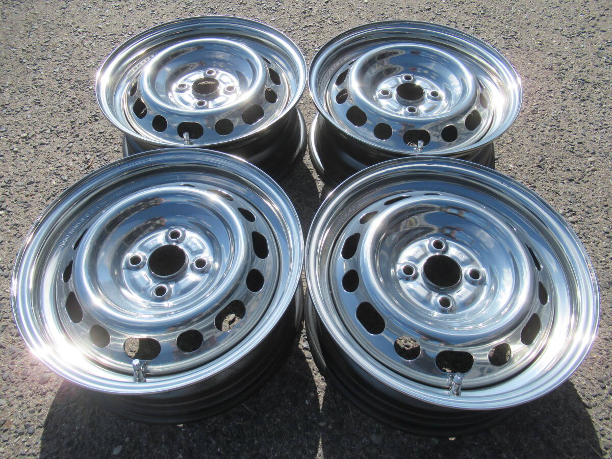 - マツダ デミオ純正☆スチールホイール 鉄チン 15インチ メッキ 5.5J+45 100 4H 54φ スズキ ダイハツ 軽四 軽トラック カスタム 手渡しOK☆