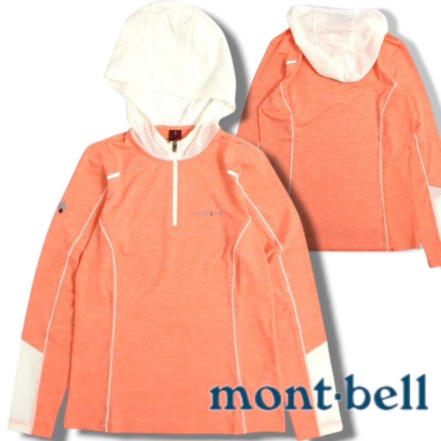 - mont-bell モンベル 新品 メッシュ切替 フーデッド ハーフジップ 長袖 カットソー プルオーバー ピーチ 90(S) レディース ▲019▼00527k01