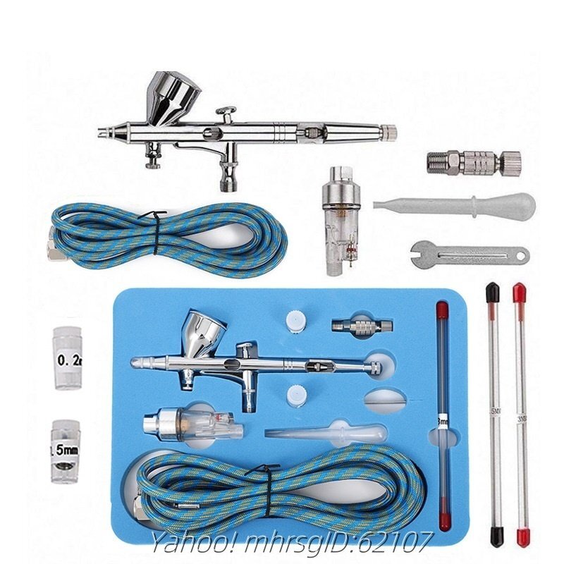 - 高品質高機能 エアブラシ セット 0.2mm 0.3mm 0.5mm ノズルセット デュアルアクションエアキット 英語マニュアル