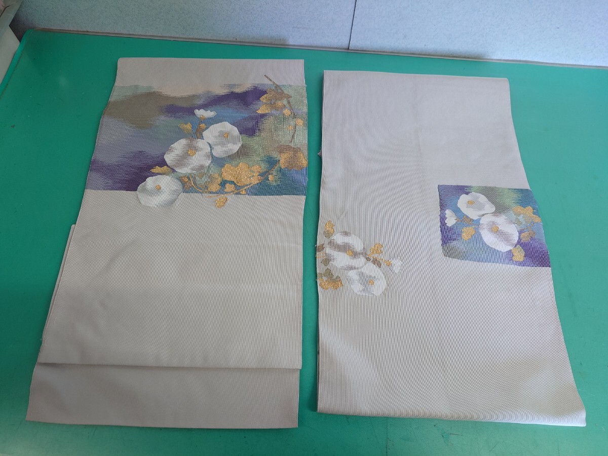 - ● 231 在銘 落款 作家物 高級 つづれ織り 帯 訳あり品 着用しやすい 二部式加工 ④