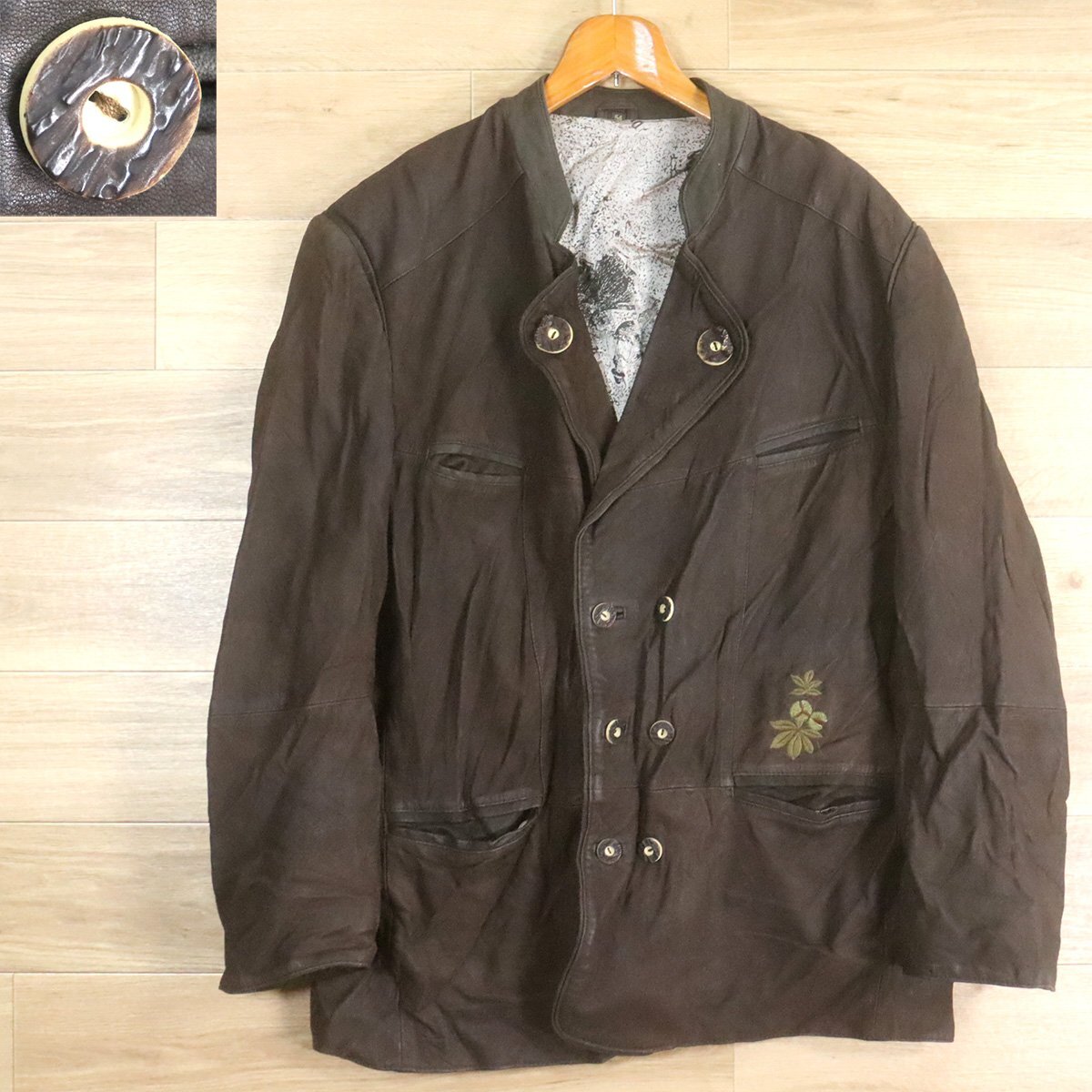 - #3S/O10.16-1 ユーロ古着 チロリアンジャケット 本革 レザージャケット 刺繍 バイエルン トラハテン ブレザー 54 ヴィンテージ