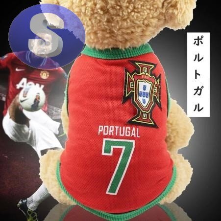 - ドッグウェア 春夏 ポルトガル Sサイズ サッカー 代表 ユニフォーム 犬服 小型犬 袖なし 通気性 柔らか 洋服 可愛い