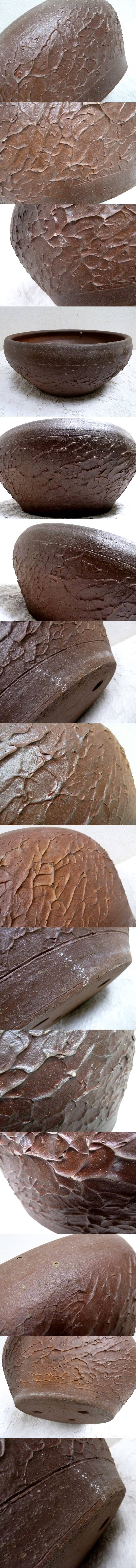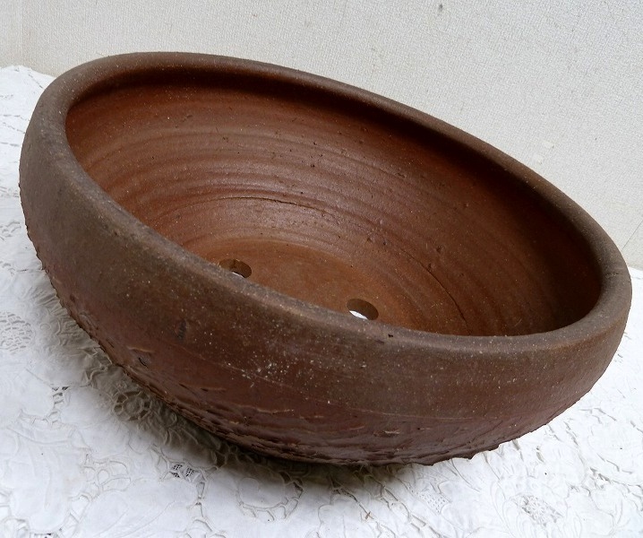 - (☆BM)盆栽鉢 浅鉢 三つ穴 素焼き 直径40.5㎝ 7kg 植木鉢 平鉢 園芸 日本庭園