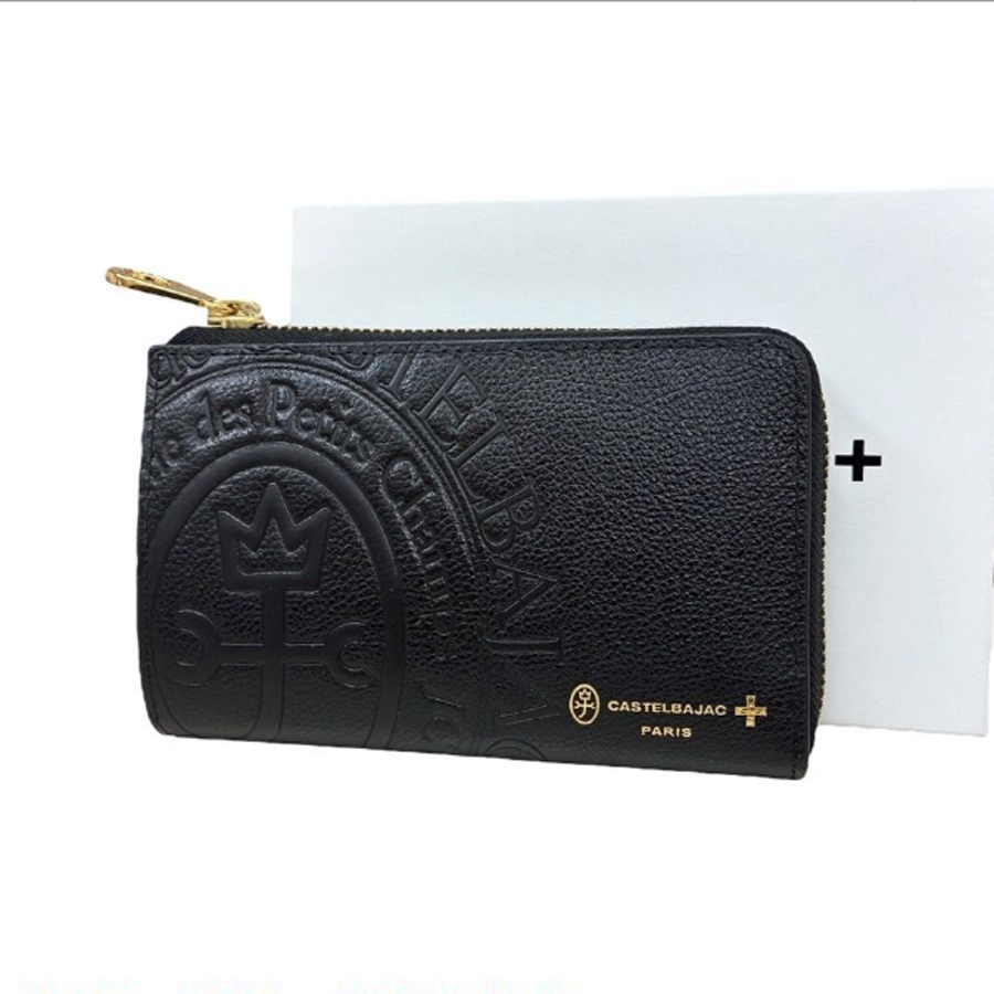 > 美品 CASTELBAJAC カステルバジャック L字ファスナー財布 レザー ブラック 二つ折り財布 メンズ レディース