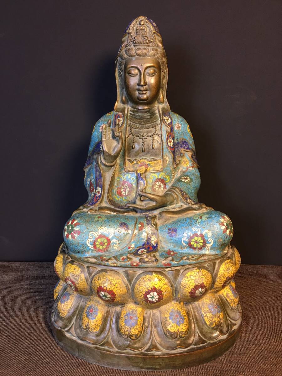 - 旧 清代 景泰藍 観音 極細工 古置物 古賞物 中国古美術 唐物 S711