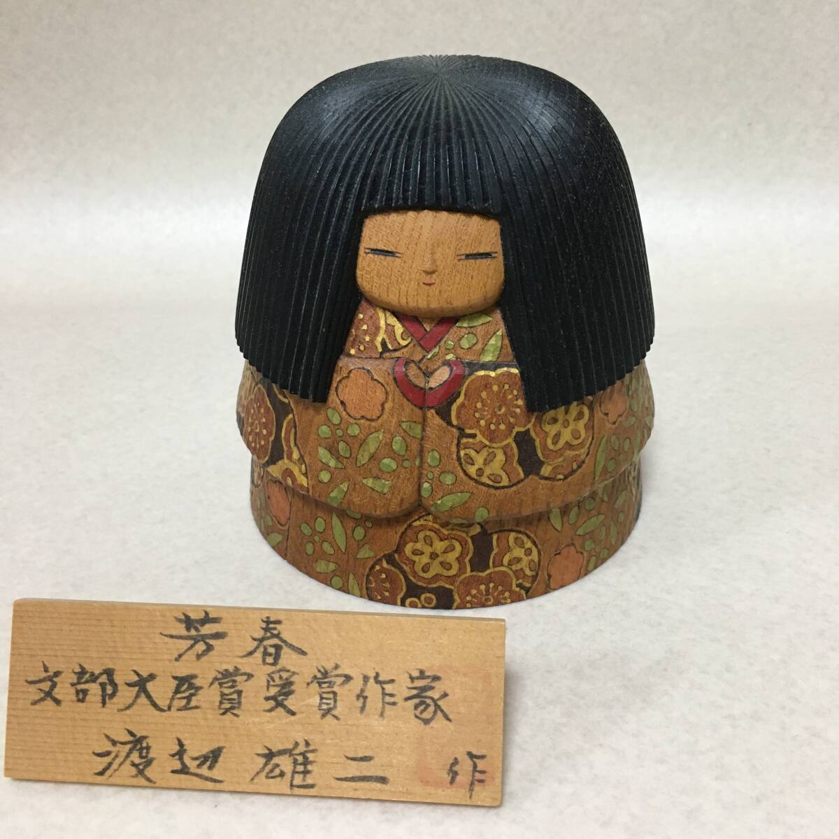- E896 渡辺雄二 こけし「芳春」 創作こけし 文部大臣賞受賞作家