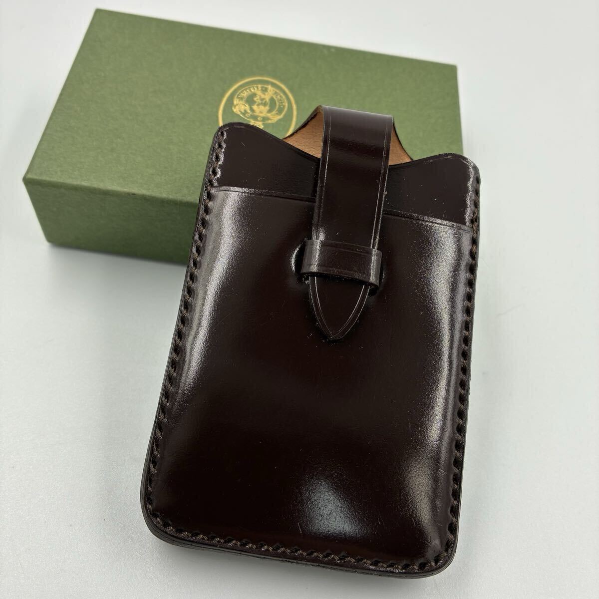 - 1円■極美品■コードバン カードケース パスケース 定期入れ 名刺入れ 顔料染め ブラウン 茶色 馬革