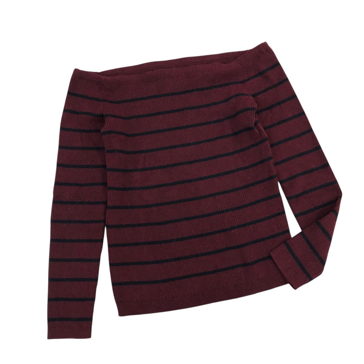 - 11Nm335-15 American Eagle Outfitters アメリカンイーグル アウトフィッターズ ボーダー オフショル 長袖 ニット セーター ボルドー系 L