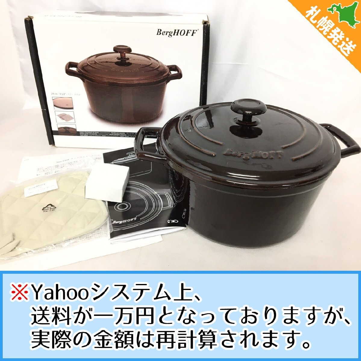 > 【R1-00748】未使用 Berg HOFF バーグホフ ほうろう 両手鍋 内径24×高さ18(約㎝) 箱付き【千円市場】