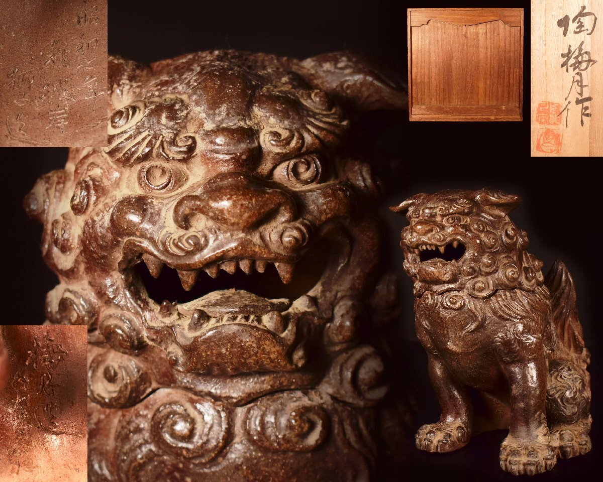 Z624 【泉美】陶彫作家 富本梅月作 常滑焼 獅子香炉 香道具 共箱入拍卖