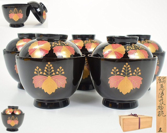 Y126【泉美】輪島塗 高台寺蒔絵 吸物椀 5客 木製 漆芸 漆器 蓋付 懐石道具 共箱入拍卖