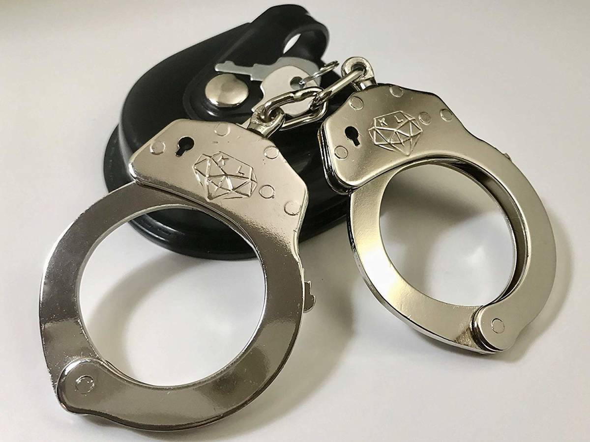 - HAND CUFF★軽量ケース付き ハンドカフ 本格仕様手錠 鋼鉄製 手錠 本物 錠前 自転車 ロック 防犯 傷・汚れあり