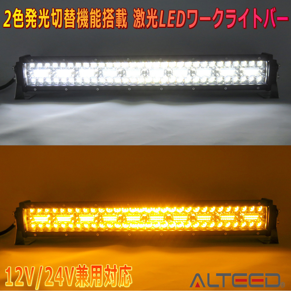 > ALTEED/アルティード 2色発光激光LEDライトバー 白色黄色点灯点滅 ワークライト 反射ミラー 12V24V兼用 防水防塵発光照明灯