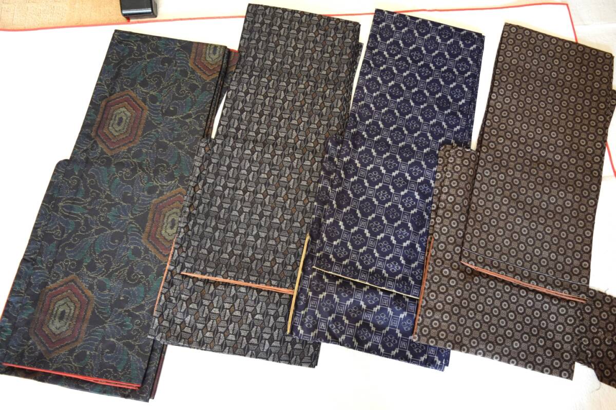 - ★正絹 着物 紬 大島 絣 まとめて4点★着用可 リメイク素材